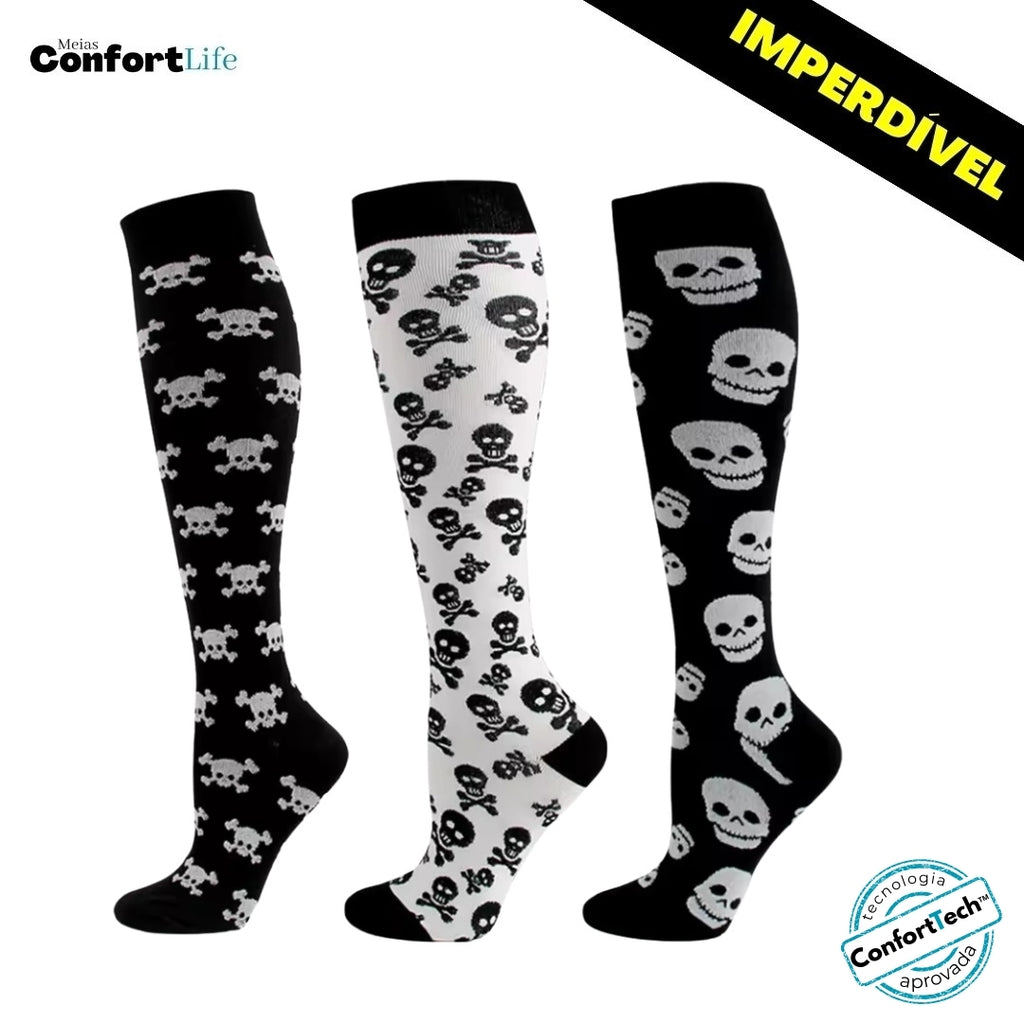 Kit 3 Pares de Meia Compressão 20-30 mmHg - Caveira (PROMO)