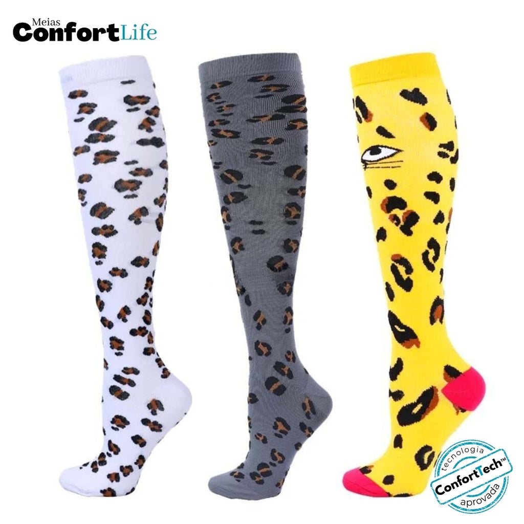 Kit 3 Pares de Meia Compressão 20-30 mmHg - Leopardo