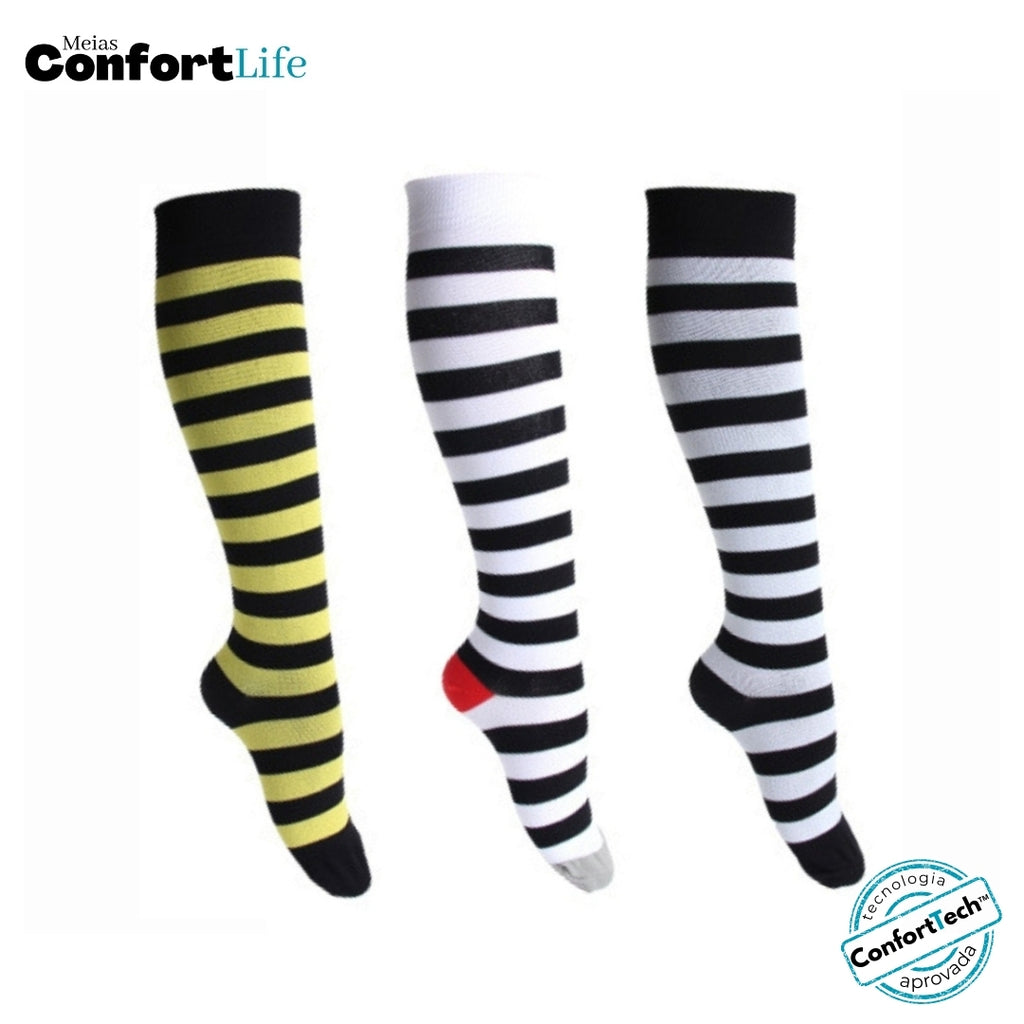 Kit 3 Pares de Meia Compressão 20-30 mmHg - Listradas A
