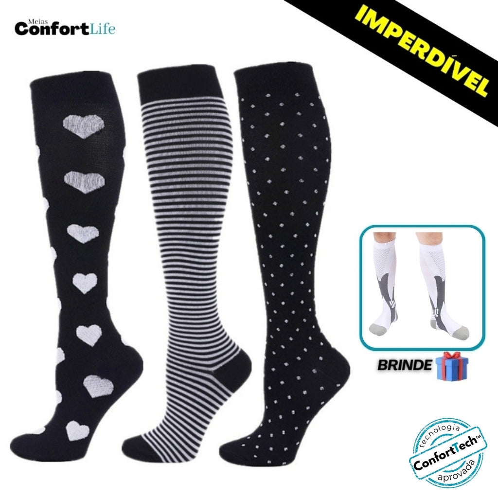 Kit 3 Pares de Meia Compressão 20-30 mmHg - Toronto - COMPRE 2 LEVE 3 + Brinde