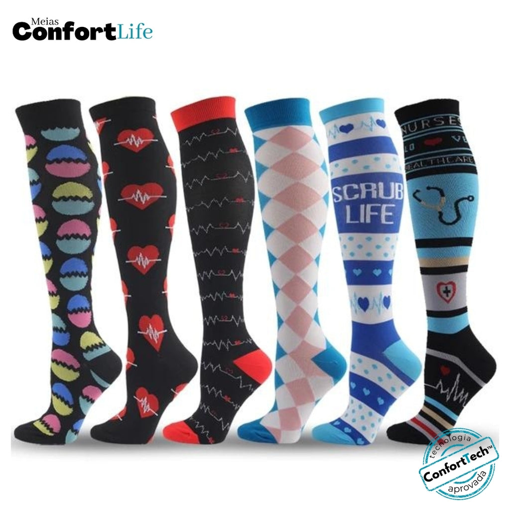 Kit 6 Pares de Meia Compressão 20-30 mmHg - Life (Premium)