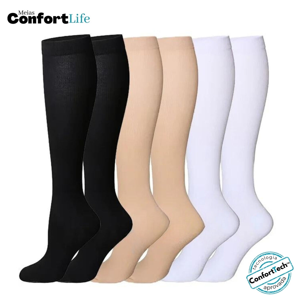 Kit 6 Pares de Meia Compressão 20-30 mmHg - Preta, Nude e Branca